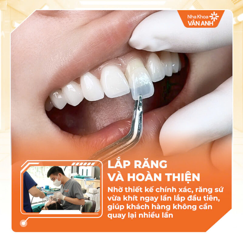Nhờ vậy, răng sứ khi lắp lên khít tuyệt đối, không hở viền, không cộm, không ảnh hưởng đến nướu hay khả năng ăn nhai.