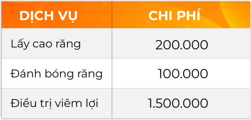 BẢNG GIÁ DỊCH VỤ ĐIỀU TRỊ VIÊM LỢI