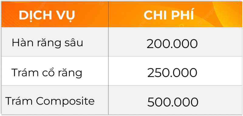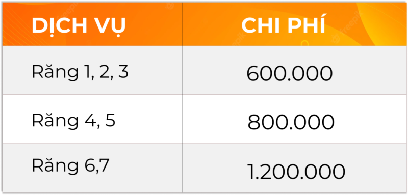 BẢNG GIÁ DỊCH VỤ HÀN RĂNG