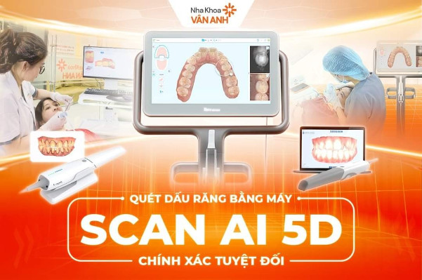 Hiện nay, Nha khoa Vân Anh áp dụng kỹ thuật lấy dấu răng bằng máy quét dấu răng SCAN 5D hiện đại vào quy trình làm việc!. Những ưu điểm vượt trội: Chính xác tuyệt đối, thoải mái cho bệnh nhân, tiết kiệm thời gian.