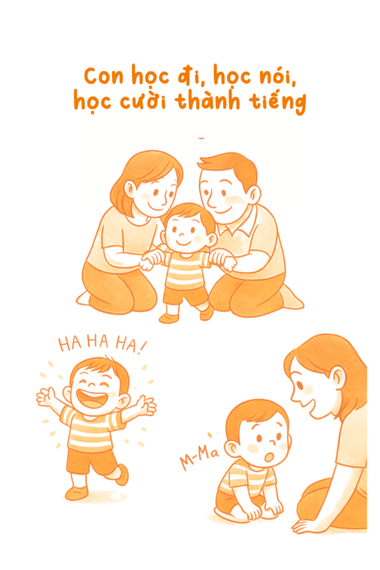 Rồi đến khi con biết cười, biết gọi “bố ơi”, “mẹ ơi”, mỗi nụ cười của con như ánh nắng ấm rọi vào cả thế giới của gia đình mình.