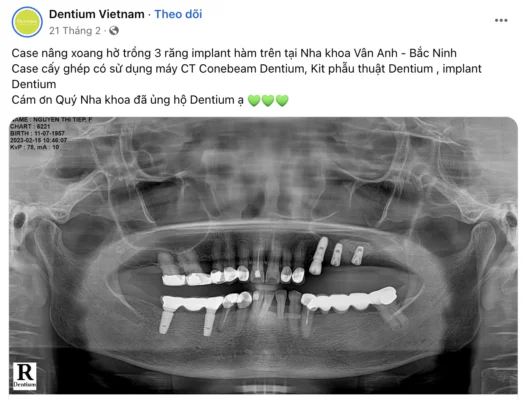 Nha khoa Vân Anh cam kết sử dụng loại trụ đạt chuẩn chất lượng, trong đó có hãng Dentium – Hãng implant nổi tiếng của Hàn Quốc chia sẻ lại: